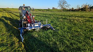 Gleichzeitig verhindern die Schwadräder, dass das gemähte Gras von den Traktorreifen überfahren wird, was die Futterqualität zusätzlich erhöht.